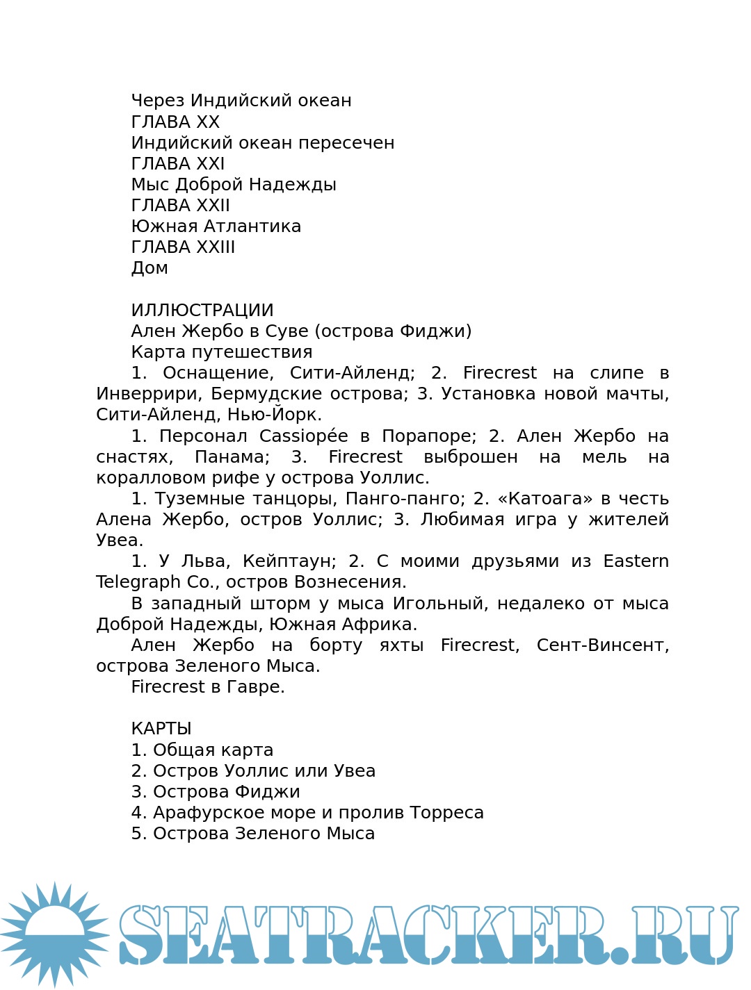 Год выпуска: 1936 Язык: Русский Автор: Жербо А. Жанр: Историческое Издательство: Перевод любительский. — London: Hodder and Stroughton Формат: PDF, FB2 Качество: Изначально компьютерное (eBook) Количество страниц: 219 Описание: Ален Жербо (1893-1941) французский моряк, писатель и чемпион по теннису, совершивший кругосветное плавание в одиночку. В конце концов он осел на островах южной части Тихого океана, где написал несколько книг об образе жизни островитян. В книге «In quest of the sun» (В поисках солнца) описывается дальнейшее кругосветное одиночное плавание автора на яхте «Файркрест» из Нью-Йорка через Панамский канал, Тихий океан и Полинезию, Арафурское море, Индийский океан, мыс Доброй Надежды и Атлантику в Гавр (Франция) в 1924 - 1929 годах. Всего в этом плавании было проведено 700 дней в море и пройдено более 40000 миль.