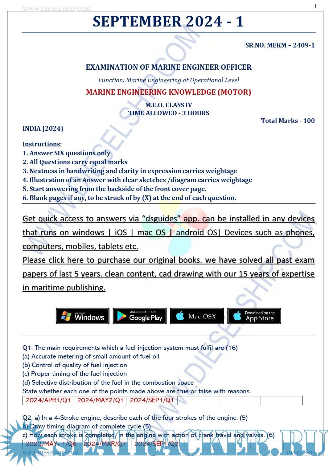 Question Paper Set for Marine Engineering Officer (M.E.O.) Class IV (July 2024) Examinations, India…