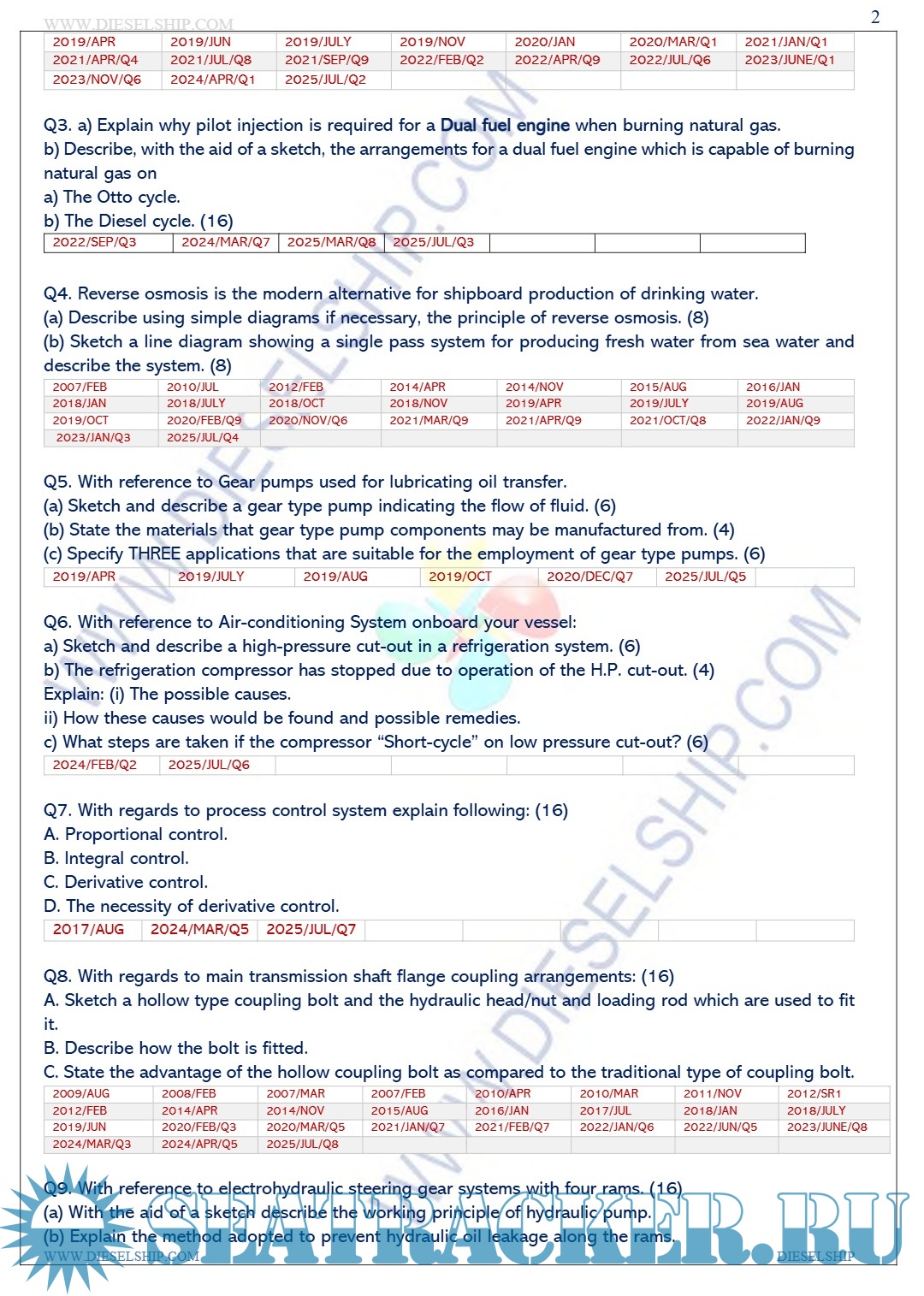Question Paper Set for Marine Engineering Officer (M.E.O.) Class II (September 2025) MMD Examinations, India