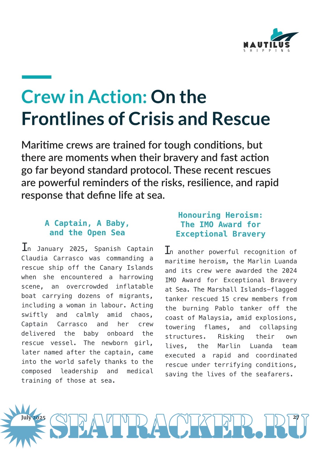 Description: Nautilus Shipping Newsletter for the month of July 2025.
