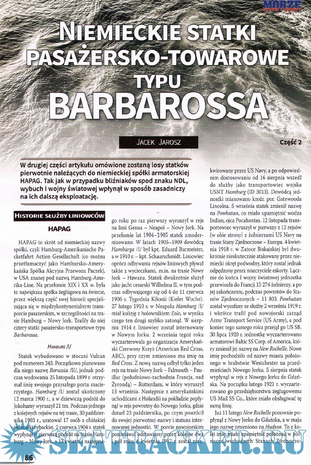 Description: Польский морской журнал. Издается с 1996 года, первоначально как ежеквартальный. С 1999 года издается раз в два месяца, а с 2007 года-как ежемесячный. Первоначально назывался Morza Statki i Okrety, в 2006 году переименован в Morze Statki i Okrety. С 2004 года полностью цветной (ранее только вставки). В 2008 году стали издаваться специальные выпуски, первоначально нерегулярные. С 2014 года выпускается как обычное издание и специальное издание, с непрерывной нумерацией.