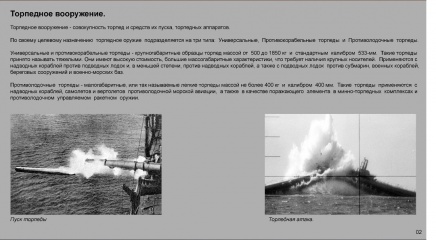 Описание: Сотрудником филиала Центрального военно-морского музея на крейсере "Аврора" К. Г. Мюллером к 75-летию Победы в Великой Отечественной войне подготовлена электронная выставка "Вооружение Военно-Морского Флота СССР. 1930-1960". Она представляет собой информационные слайды, повествующие о становлении советской корабельной артиллерии и минно-торпедного вооружения.