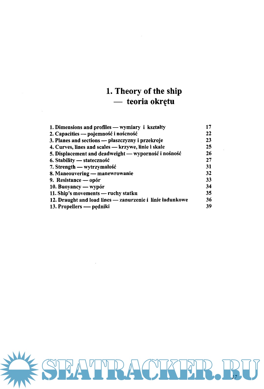Description: Obszerny słownik zawierający setki rysunków z dwujęzycznym opisem, pokrywający całą problematykę statkową oraz codzienne słownictwo używane na morzu.