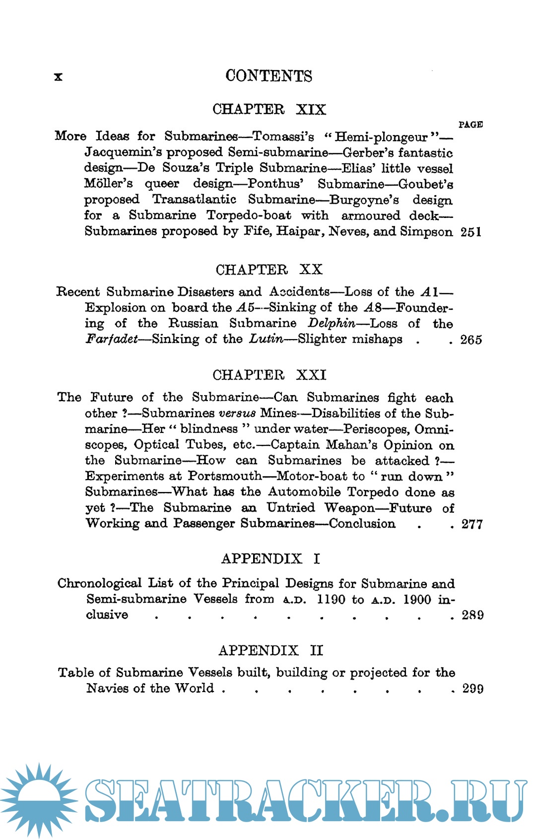 Appendix I. Chronological list of the principal submarine and semi-submarine vessels either built or proposed from the earliest times to A.D. 1900 inclusive.
