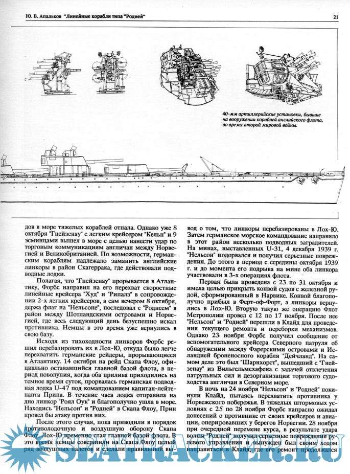Описание: Линейные корабли “Родней” и “Нельсон” являлись венцом развития английских тяжелых артиллерийских кораблей. Несмотря на все нововведения, их конструкция так или иначе повторяла конструкцию таких удачных кораблей, как Куин Элизабет, но самое главное – была сохранена идеология развития английских боевых кораблей, преломленная через опыт первой мировой войны с учетом перспективы на войну предстоящую.
