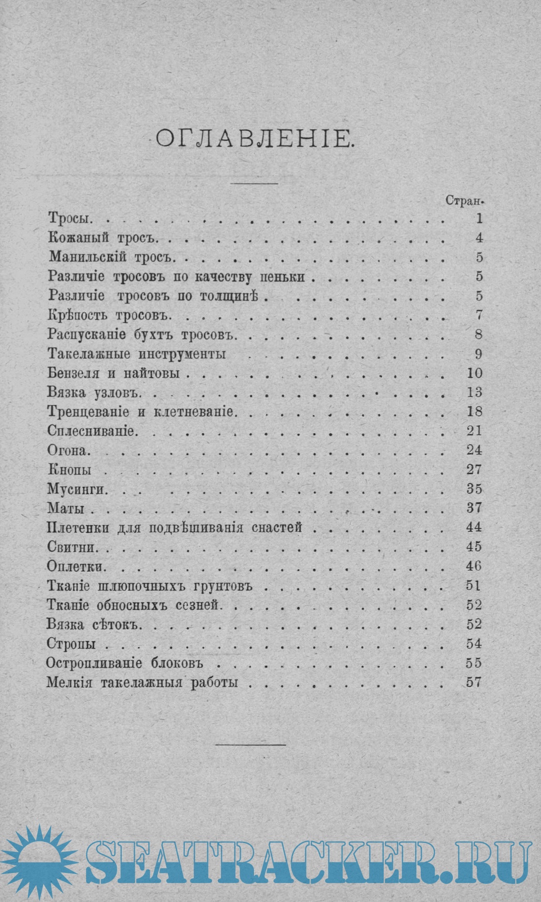 Год выпуска: 1909 Язык: Русский Автор: Толстопятов А.М. Жанр: Курс лекций Издательство: СПб.: тип. Мор. м-ва Формат: PDF Качество: Отсканированные страницы Количество страниц: 96 Описание: Курс «Курс такелажных работ» был принят как руководство в Морском корпусе и мореходных училищах и охватывает все вопросы, касающиеся такелажных работ. В предисловии к «Курсу…», вышедшему в 1909 году в типографии Морского министерства в Главном адмиралтействе, Санкт-Петербург, его составитель, лейтенант А. М. Толстопятов писал: «Издавая настоящий курс такелажных работ, я задался целью выпустить руководство, дающее возможность изучить вполне самостоятельно, без посторонней помощи, эту отрасль морской практики, которая и по сие время сохранила вполне свое прежнее значение». Уже тогда для А. М. Толстопятова было характерно внести что-то новое в то, чем он занимался, и в пособии он вводит четыре новых термина: «Для большей ясности в описании и последовательности в изложении мной введены четыре условных термина: ходовая прядь, коренная прядь, новая коренная прядь и ее парная. Эти термины проходят через весь курс, а потому должны быть предварительно усвоены при чтении его без определенного порядка, т.е. при изучении какого-нибудь отдела независимо от предыдущих»