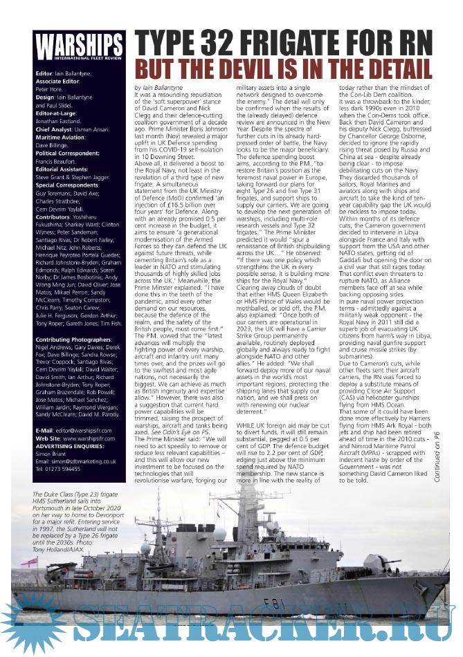 Description: Warships IFR puts the spotlight on the latest developments in the world’s navies. It covers current defence issues and has comments by leading analysts. The magazine regularly includes features on the Royal Navy and the US Navy in addition to incorporating news and features on all other navies across the globe. Warships IFR frequently carries in-depth articles on naval heritage.WARSHIPS International Fleet Review is published 12 times a year by Tandy Media Ltd who also publish Shipping Today & Yesterday (which provides news and features from the world of merchant shipping).