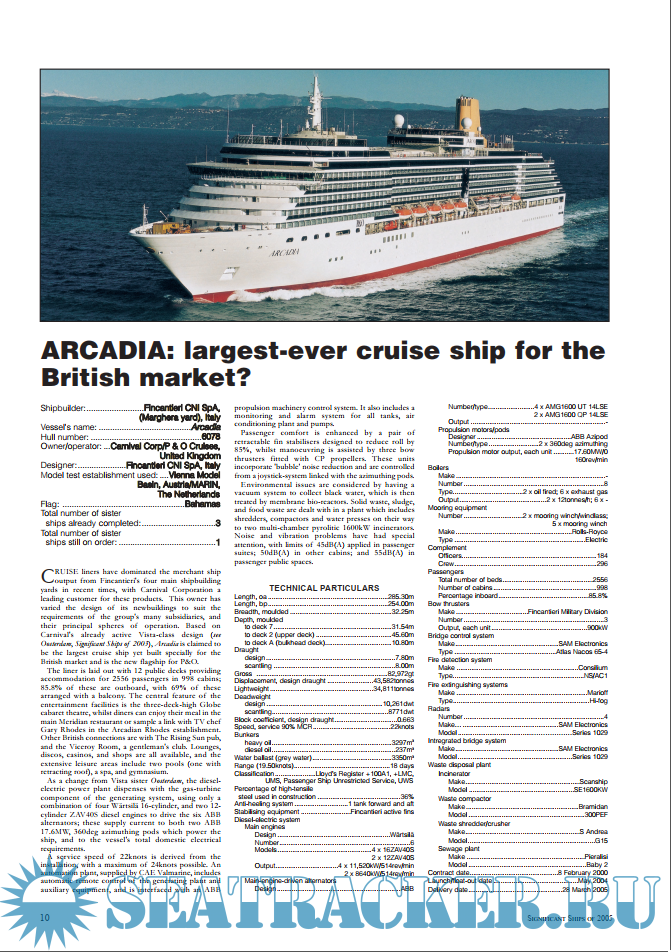 Detailed profiles and technical data of notable ships built in 2005.Screenshots