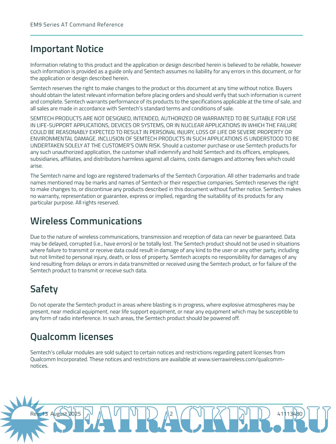 Description: This document describes supported standard and proprietary (extended) AT commands available for Semtech