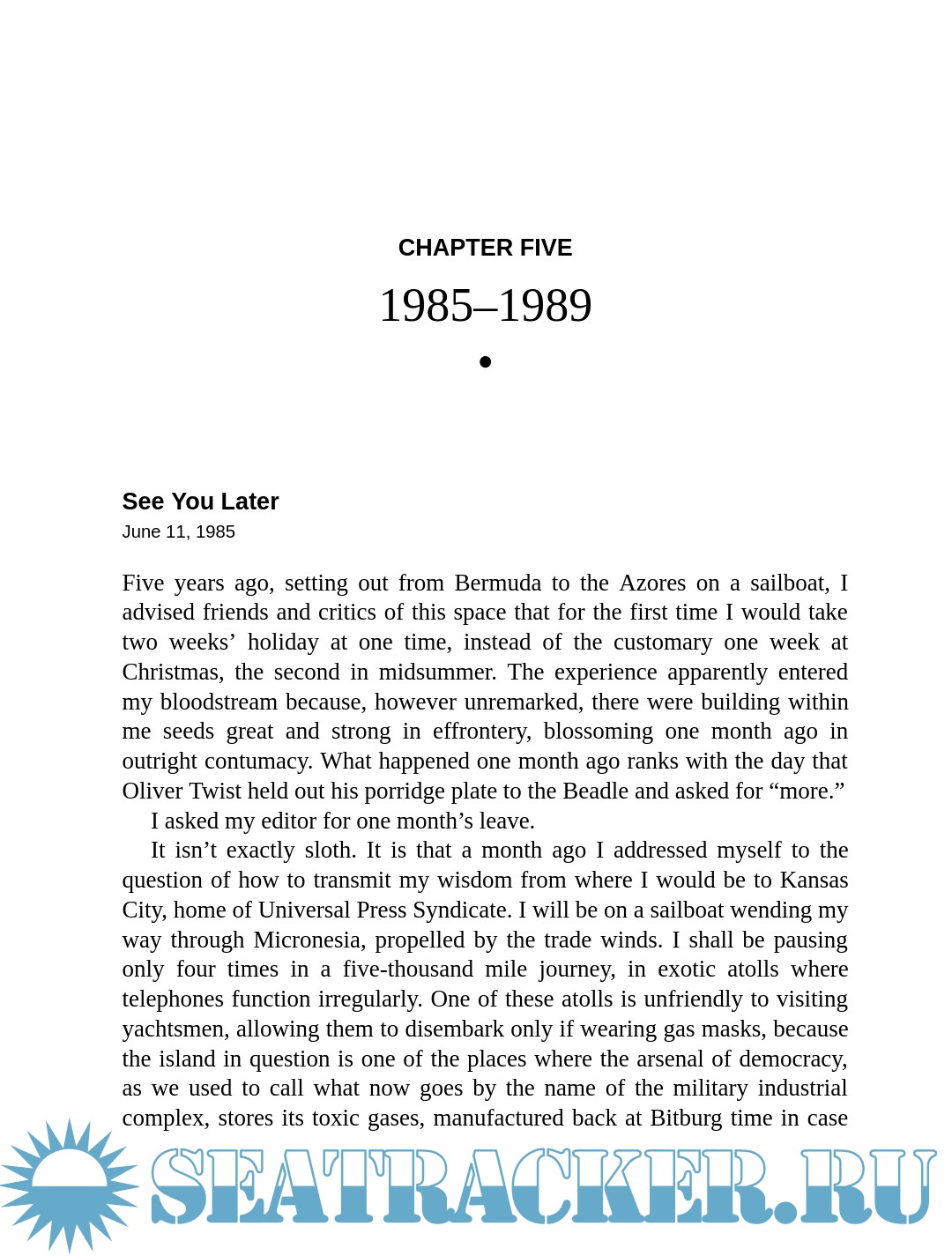 Buckley’s talent for arranging a mise-en-scène stands out in accounts of riding the Orient Express, skiing at Alta, or vacationing at Barbuda. Though himself a central character in the story, he never dominates it. He wrote candidly about travel misadventures, as when his sixty-foot schooner broke down in the Bahamas and was towed to Miami by a Coast Guard cutter, or when a malfunctioning compass landed his boat on a rocky shoal off Rhode Island and the Coast Guard said, “Sorry, we can’t help you.” He also took a gimlet eye to the travel industry and a discriminating palate to airline food, suggesting that airports sell “a really good box lunch” with celery rémoulade, fresh figs, and a nice Bordeaux.