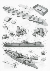 18 листов цветных выкроек и описаний для изготовления бумажной модели канонерской лодки ''Кореец'' в масштабе 1:200Скриншоты