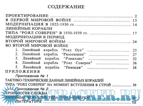 В книге описаны: Проектирование и постройка, участие в Первой Мировой войне, модернизация в 1922-1930 гг., Линейные корабли типа "Роял Соверен" в 1930-1939 гг., модернизации в период Второй Мировой войны, участие во Второй Мировой войне. Большое количество схем, чертежей, фото.