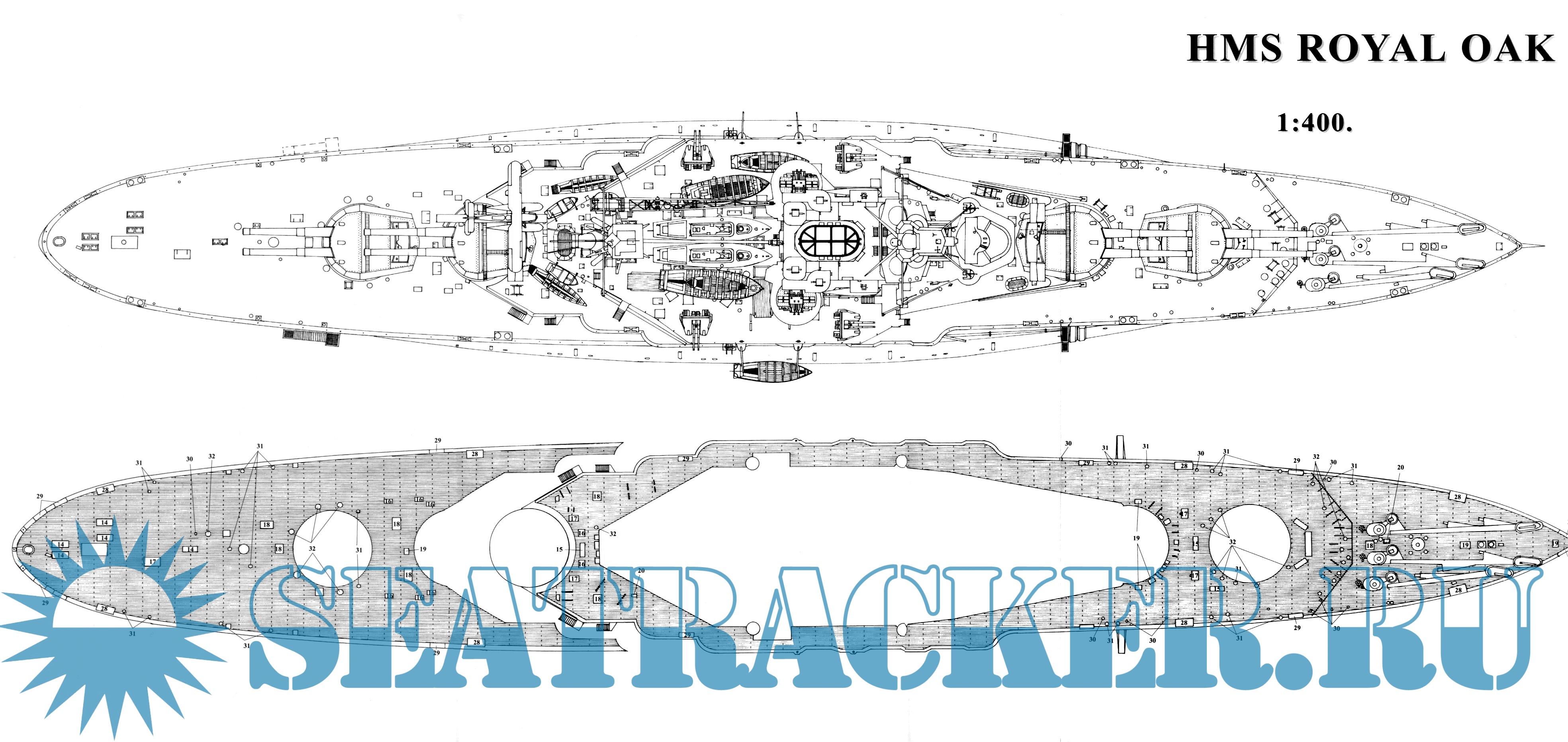 31 лист чертежей линкора HMS Royal OAK 1939 год (Великобритания) в масштабе 1:400