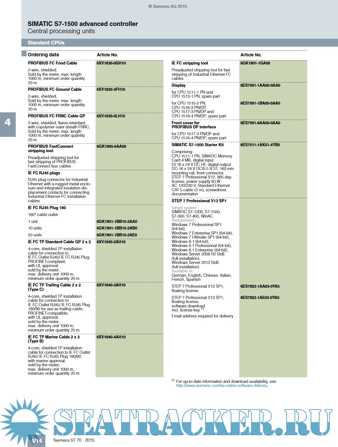 SIMATIC Products for Totally Integrated Automation - Catalog ST 70