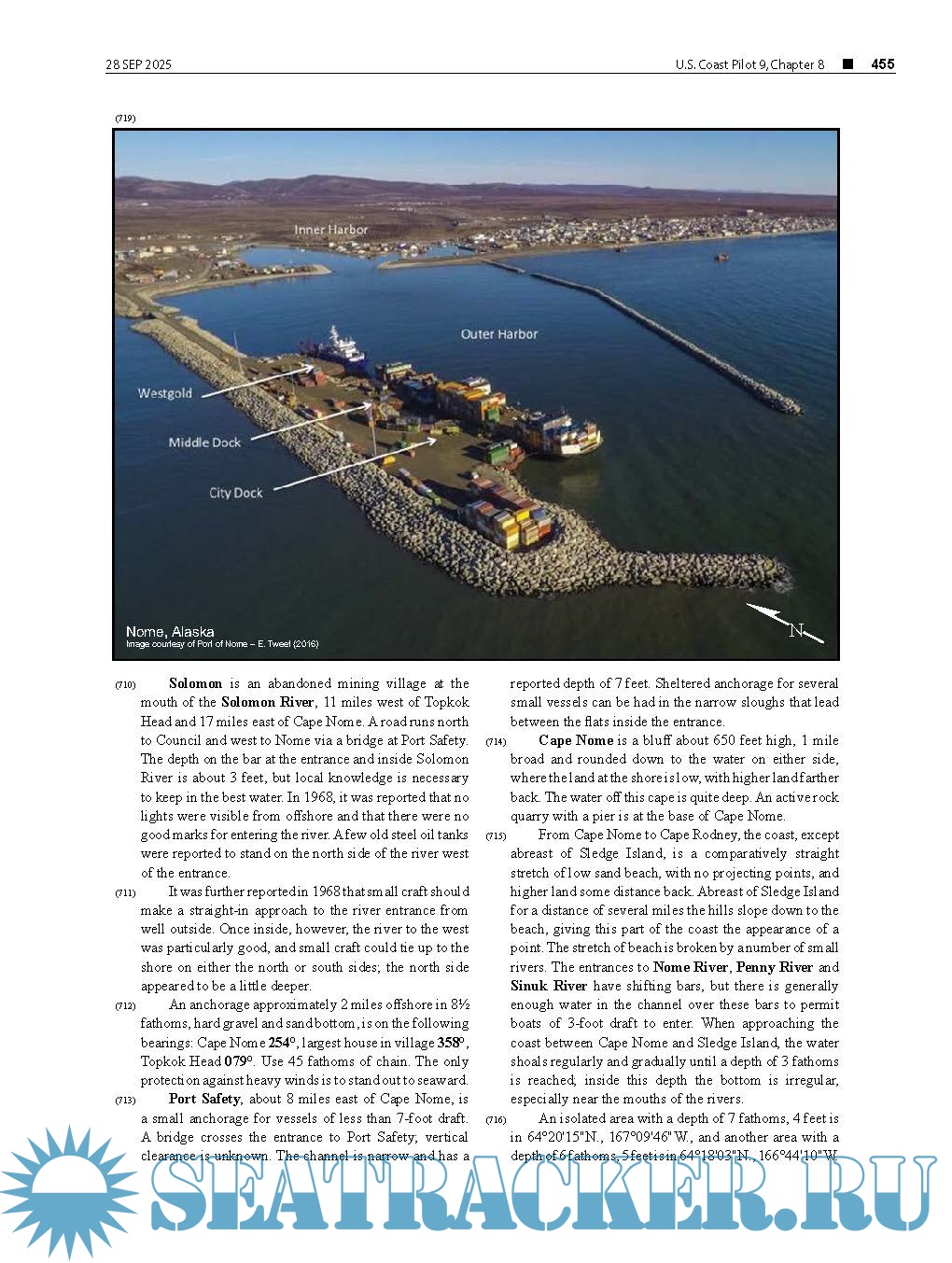 Year: 2025 Language: English Author: NOAA Genre: Documentation Publisher: National Oceanic and Atmospheric Administration (NOAA) Edition: 2025 (43rd) Edition Format: PDF Quality: eBook Pages count: 544 Description: The United States Coast Pilot® consists of a series of nautical books that cover a variety of information important to navigators of coastal and intracoastal waters and the Great Lakes. Issued in ten volumes, they contain supplemental information that is difficult to portray on a nautical chart. Topics in the Coast Pilot include channel descriptions, anchorages, bridge and cable clearances, currents, tide and water levels, prominent features, pilotage, towage, weather, ice conditions, wharf descriptions, dangers, routes, traffic separation schemes, small-craft facilities, and Federal regulations applicable to navigation. This edition cancels the 42nd Edition and includes all previously published corrections. This publication has been updated through: 28-Sep-2025