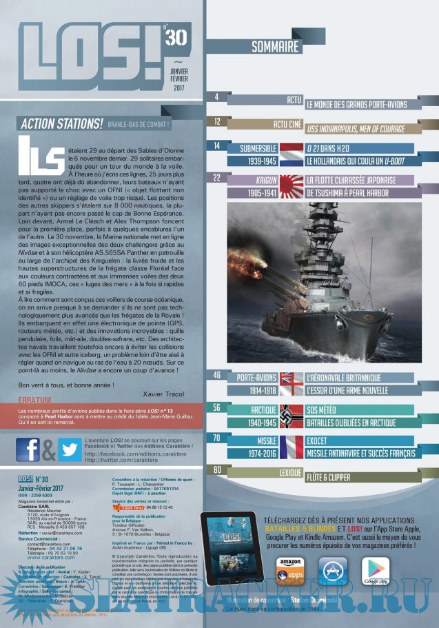 Description: LES ÉDITIONS CARAKTÈRE PRENNENT LE LARGE EN LANÇANT UN NOUVEAU MAGAZINE CONSACRÉ À LA GUERRE NAVALE !Les sujets passionnants ne manquent pas et LOS ! met un point d’honneur à les présenter au lecteur comme cela n’a jamais été fait dans la presse française jusqu’à présent. Un seul mot d’ordre pour l’équipe rédactionnelle : rigueur scientifique et présentation ludique !S’appuyant sur un fond photographique d’exception, sur des plans de bateaux et d’avions, les éditions Caraktère innovent une fois de plus en vous proposant aussi des vues 3D détaillées, le tout au service de textes soigneusement rédigés par des auteurs spécialisés. Vous comprendrez ainsi comment fonctionne un submersible, comment se déroule un combat naval, comment est conçu un cuirassé ou comment attaquent les avions-torpilleurs !Revivez au fil des pages l’aventure humaine exceptionnelle des matelots de la marine marchande affrontant les U-Boote en Arctique, ou celle des pilotes embarqués sur les porte-avions américains et japonais. Lisez les exploits des hommes-grenouilles italiens en Méditerranée, des équipages des vedettes lance-torpilles dans la Manche, des sous-marins soviétiques de la guerre froide ou des grands cuirassés de 1914-18