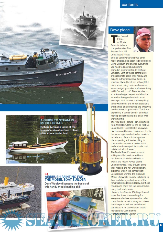 Year: 2014 Language: English Author: Lindsey Amrani (Editor) Genre: Periodical publication Format: PDF Quality: eBook Pages count: 100 Description: Model Boats magazine is a practical and informative read for those with a love for the hobby. It covers the latest news and views from the various clubs and associations around the country, useful hints, tips and step by step guides for those interested in the art of constructing a model boat as well as tests and recommendations of new boats and tools. Floating along behind these are great special features examining in depth different models from narrowboat to destroyer!