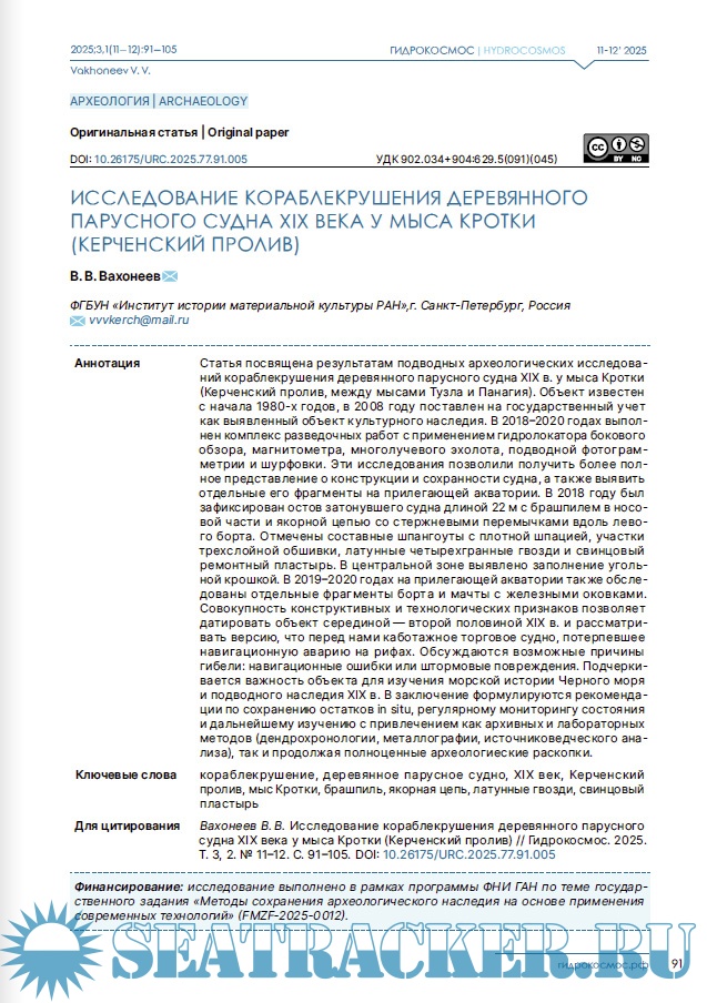 Год выпуска: 2025 Язык: Русский, Английский Автор: группа авторов Жанр: Периодическое издание (журнал) Формат: PDF Качество: Изначально компьютерное (eBook) Количество страниц: 144 Описание: Научный журнал «Гидрокосмос» — первое в России междисциплинарное издание о подводных исследованиях. Он задуман как площадка для обсуждения научных проблем изучения свидетельств взаимодействия людей с морями, озерами и реками, исследованиям смежных занятий и ремесел, а также ныне затопленных участков суши. В повестку издания входят теоретические и методологические вопросы подводных исследований; проблемы морской археологии, связанные с консервацией и реставрацией предметов, обнаруженных в воде; вопросы сохранности объектов культурного наследия; вопросы технического, медицинского, организационного и юридического обеспечения подводных археологических работ. Журнал «Гидрокосмос» создан как инструмент для укрепления сообщества теоретиков и практиков подводных исследований, для обеспечения синергии в дальнейшем развитии отрасли в России.