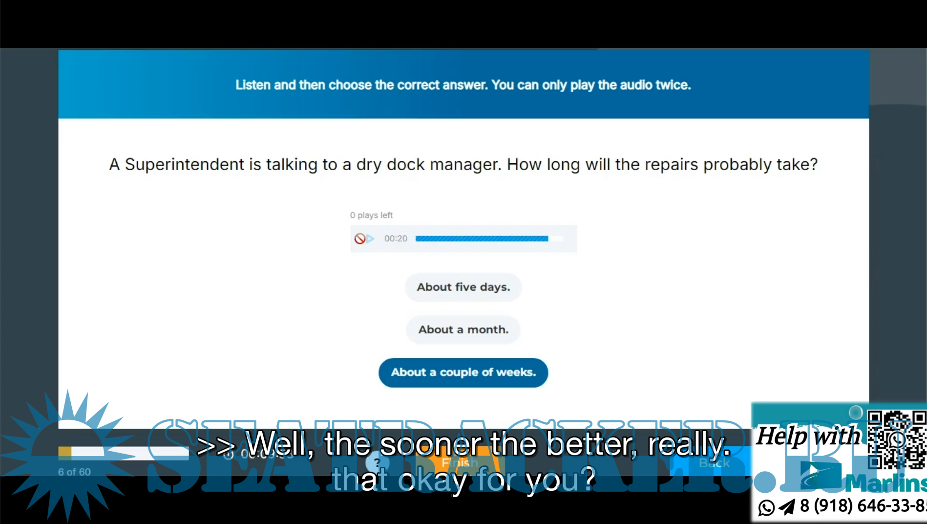 * Marlins Test For Seafarer Score 100% March 2025 | Playtime ~ 01 hr 10 min + srt