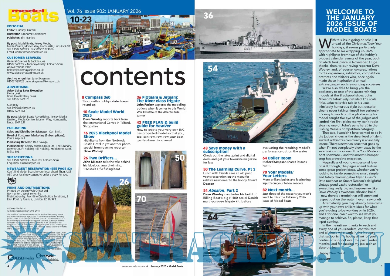 Year: 2026 Language: English Author: Lindsey Amrani (Editor) Genre: Periodical (Magazine) Edition: 2026-01 Format: PDF Quality: eBook Pages count: 100 Description: Model Boats magazine is a practical and informative read for those with a love for the hobby. It covers the latest news and views from the various clubs and associations around the country, useful hints, tips and step by step guides for those interested in the art of constructing a model boat as well as tests and recommendations of new boats and tools. Floating along behind these are great special features examining in depth different models from narrowboat to destroyer!