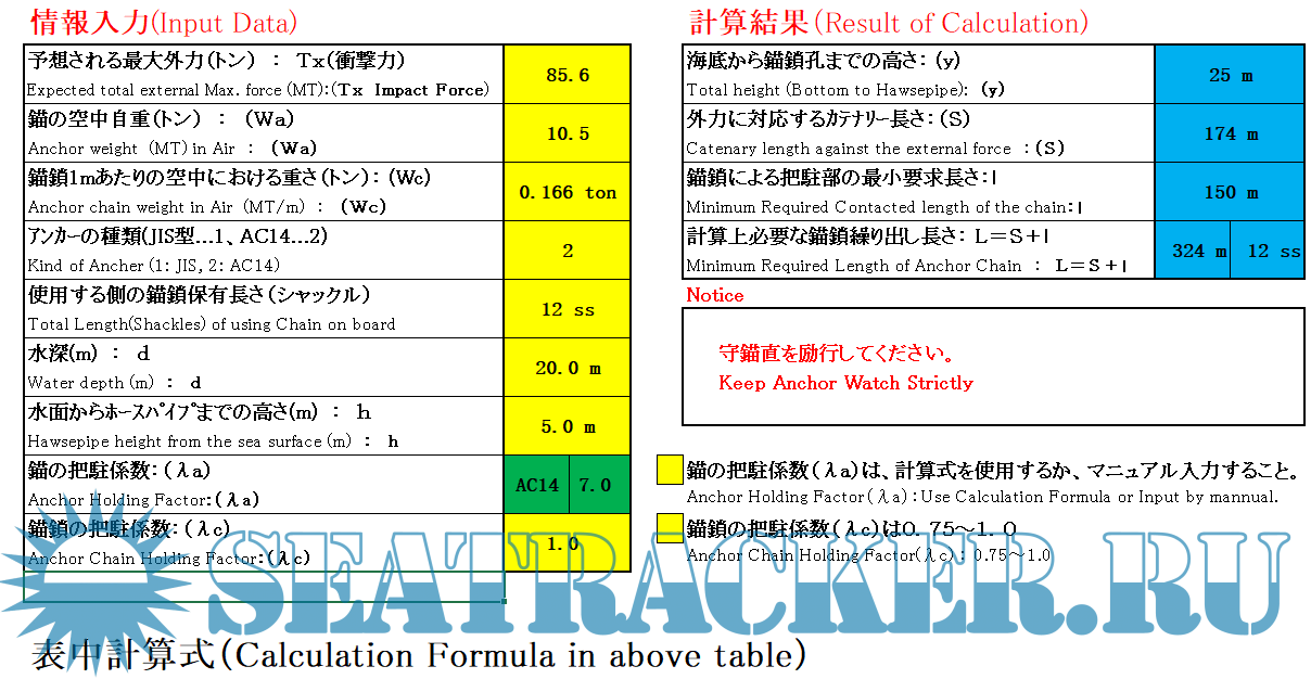 Year: 2025 Language: English, Chinese Author: Japan P and I / loss and prevention Format: XLSx Quality: eBook Pages count: 1 Description: This is a excel calculation form consists of two sheets which was found in the Club website; It can be used as a reference tool before or after dropping anchor at any exposed anchorage. Additional info: for all you reference only. bon voyage as always.