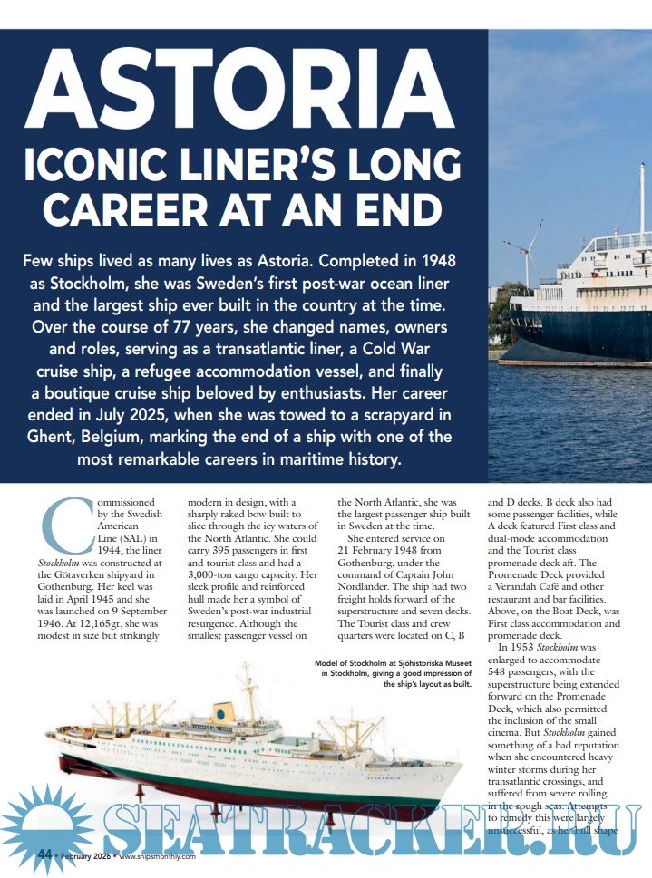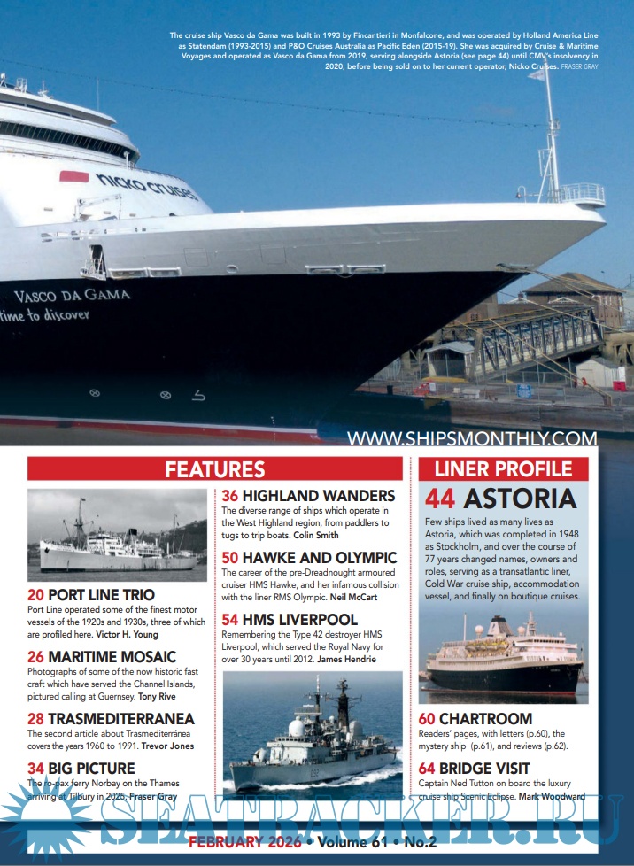 Year: 2026 Language: English Author: ShipsMonthly Genre: Periodical (Magazine) Edition: 2026-02 Format: PDF Quality: eBook Pages count: 68 Description: Ships Monthly is the world's leading international shipping magazine. Ships Monthly provides news and features for ship enthusiasts and maritime professionals, including reports on the ferry, cruise, new building and cargo ship scene as well as navies across the world.The latest issue of Ships Monthly is out now, and is packed with all the usual news and features, including outstanding articles and features.