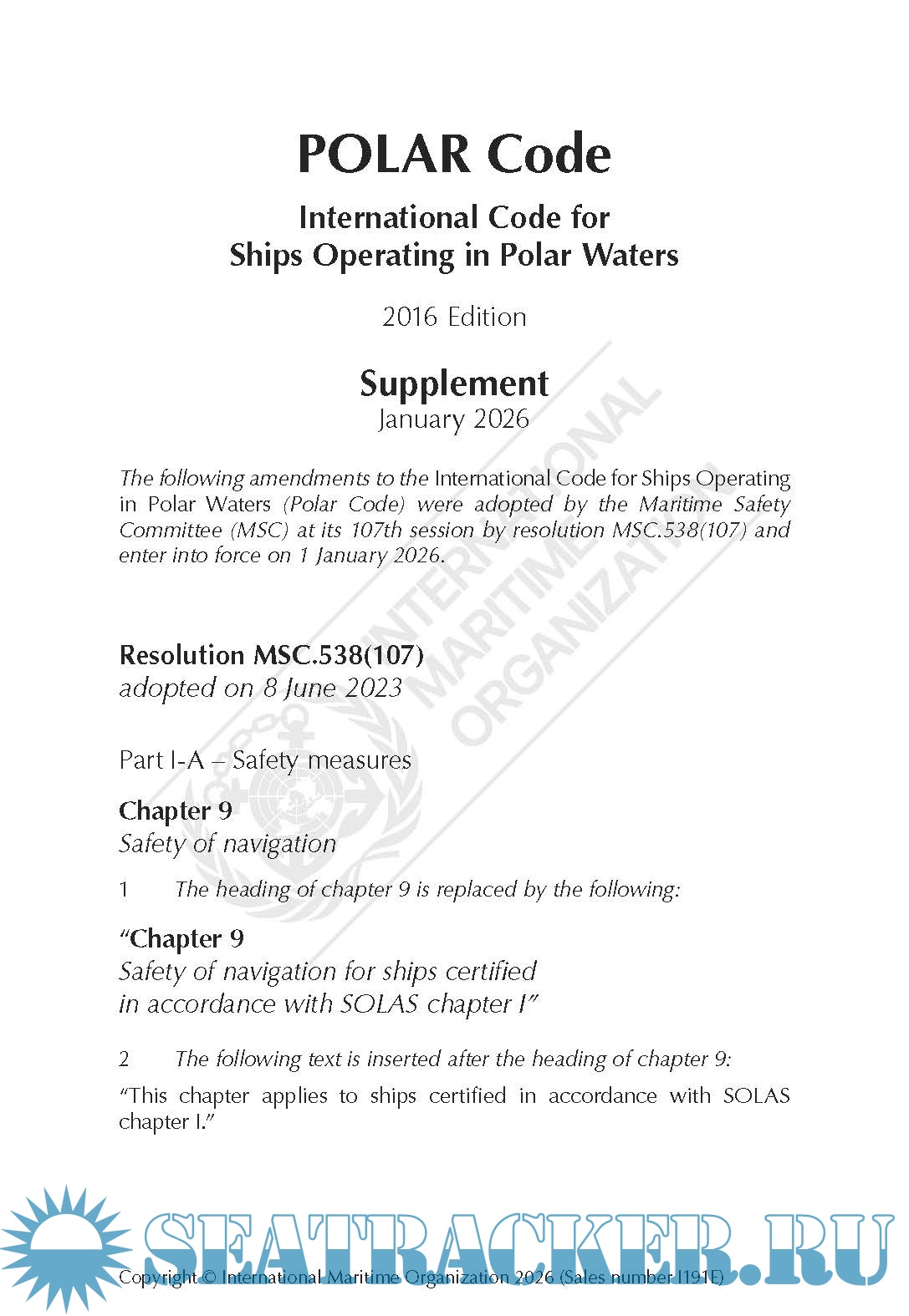 Supplement: IGC Code, 2016 Edition (IA104E) 30/01/2026