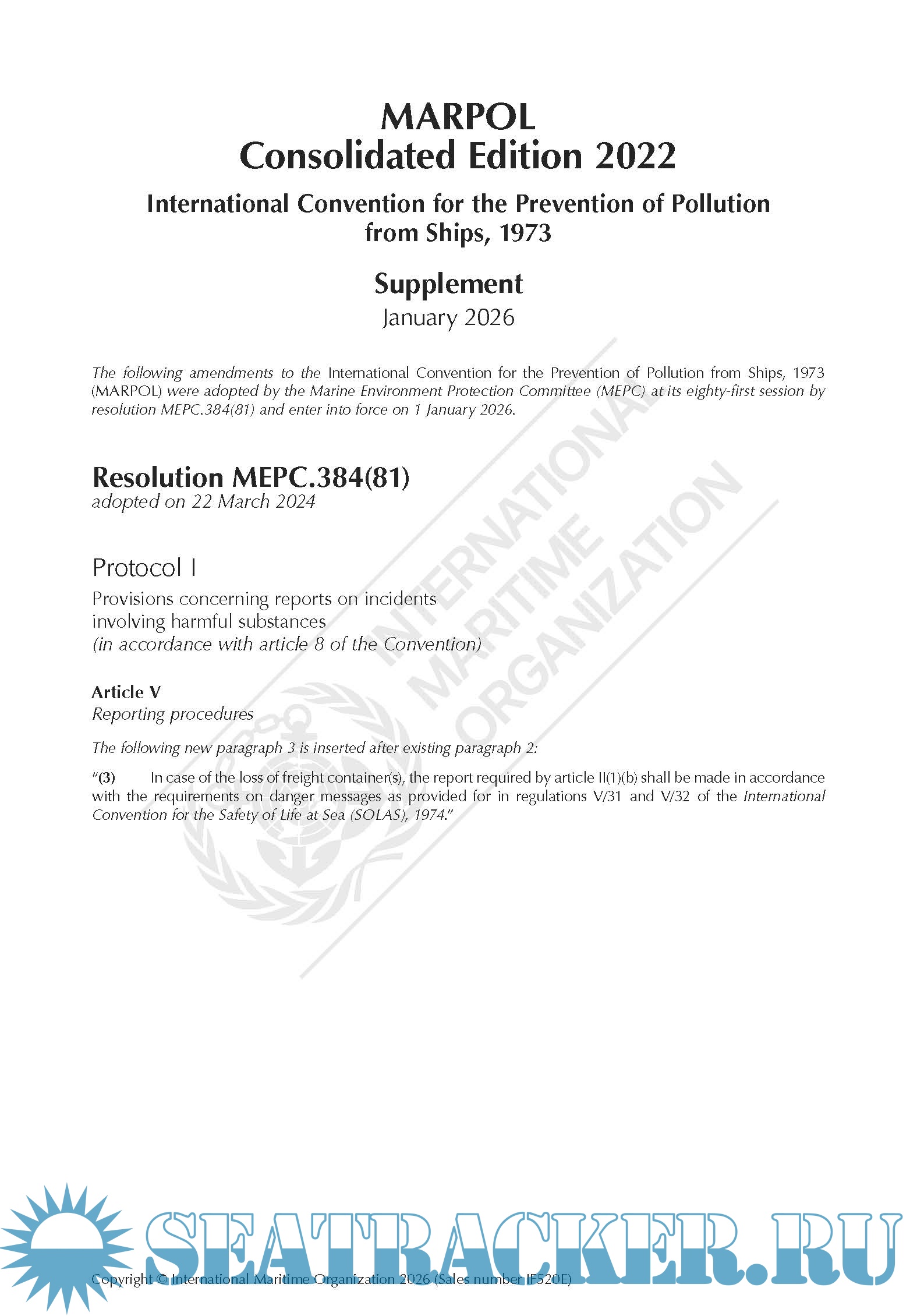 Supplement: MARPOL Consolidated Edition 2022 (IF520E) 29/01/2026
