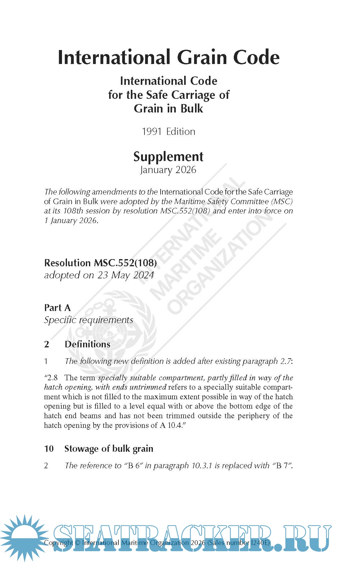 Supplement: International Grain Code, 1991 Edition (I240E) 30/01/2026