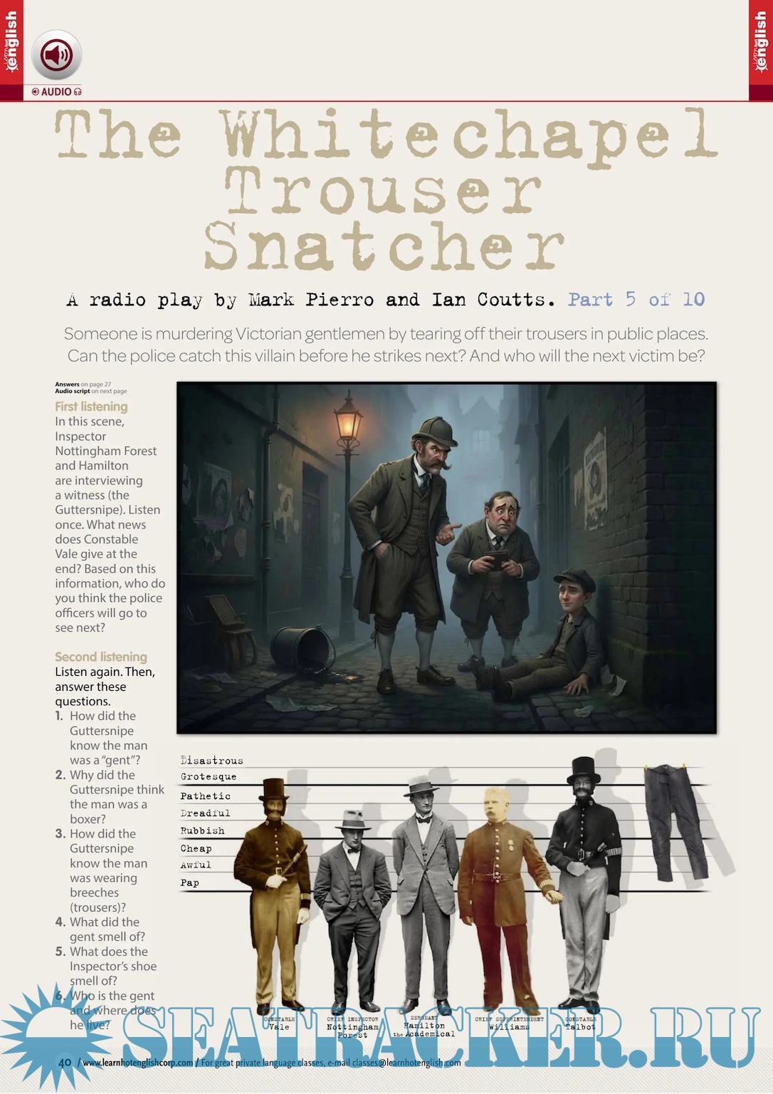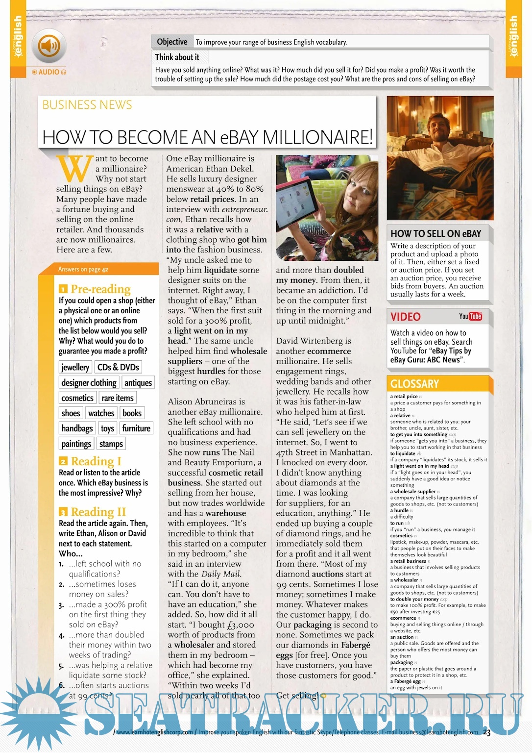 Description: English for all levels (easy – advanced). A monthly magazine for learning English: readings (current topics, words explained) + listenings (lots of accents) + exercises + videos. Idioms, phrasal verbs, useful expressions, grammar, vocabulary. Learn faster because it’s fun!