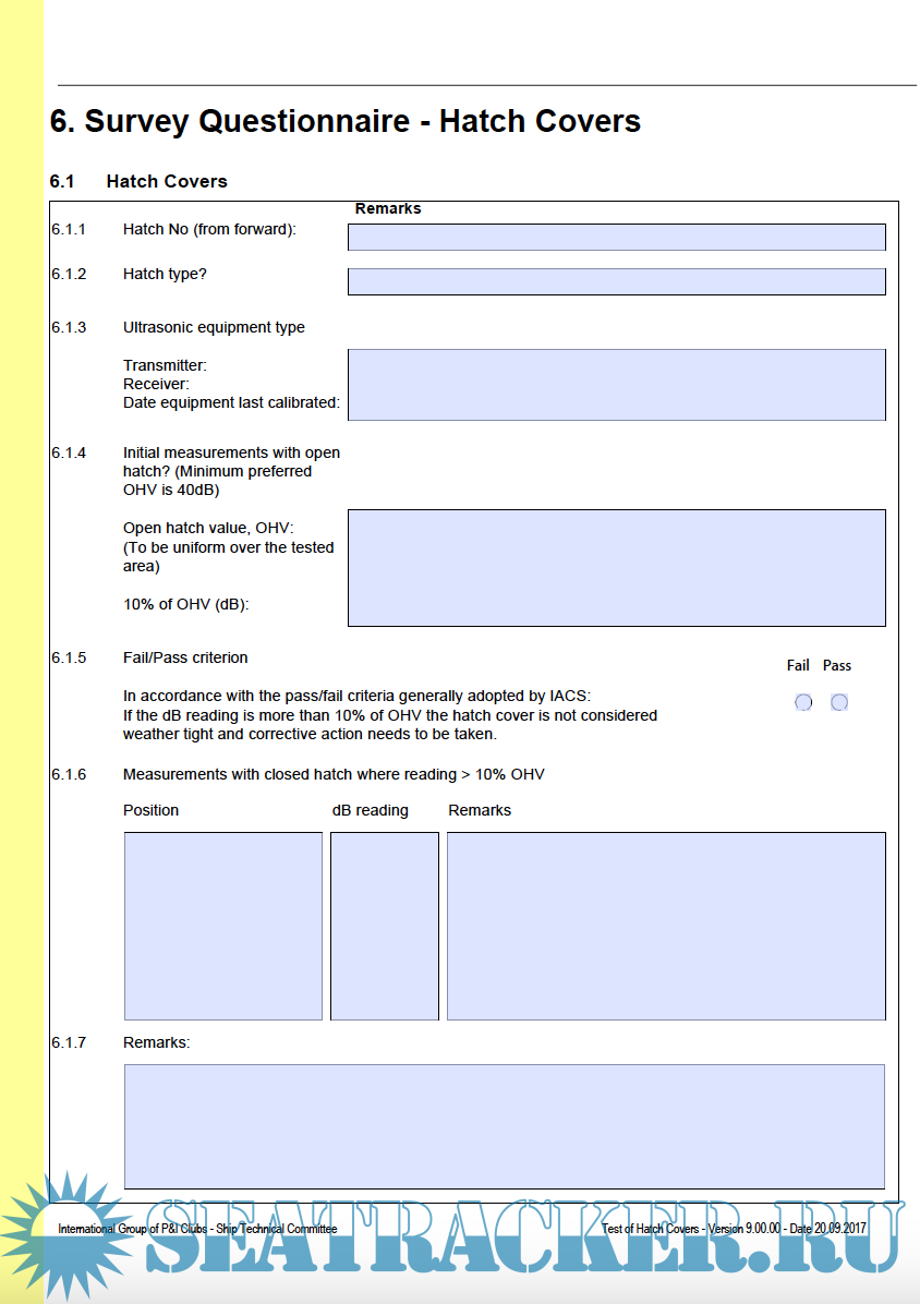 IG SHIP CONDITION SURVEY QUESTIONNAIRE – PART C – HATCH COVERS – MULTI COVERS