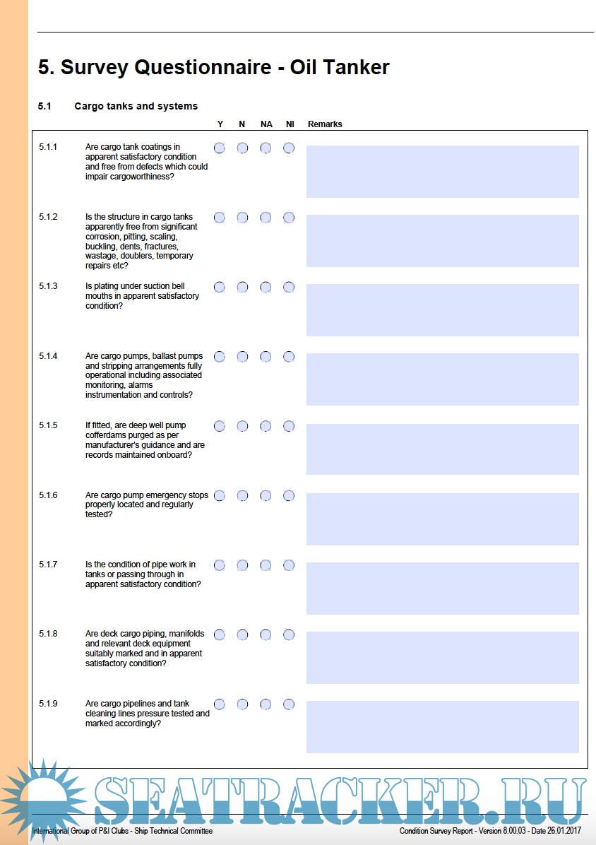 IG SHIP CONDITION SURVEY QUESTIONNAIRE PART C – OIL TANKER