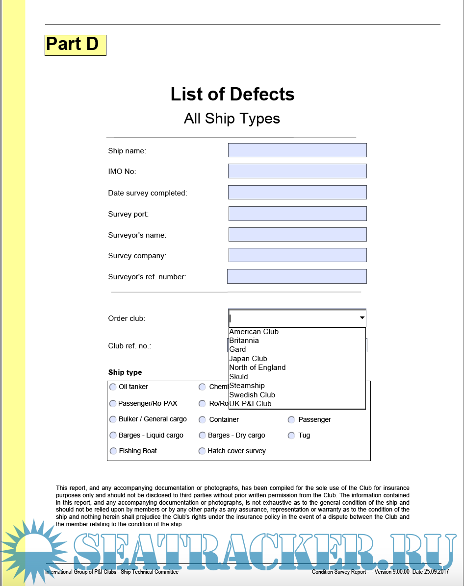 IG SHIP CONDITION SURVEY QUESTIONNAIRE PART D – DEFECT LIST FOR ALL SHIPS