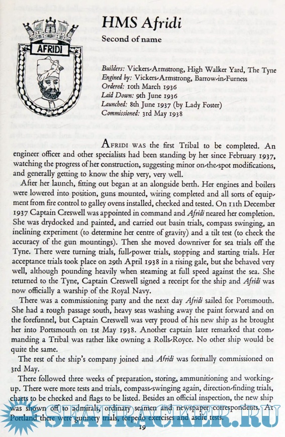 Year: 1971 Language: English Author: Martin Hubert Brice Genre: History of the Navy Publisher: Ian Allan Format: PDF Quality: Scanned pages Pages count: 326 Description: In 1934 the Admiralty considered the possible threat posed by the 20 special type destroyers of the Japanese fabuki class, which mounted 65 inch guns and ninth repeal tubes on a displacement of 1680 tons. Regarded by some authorities as the most powerful destroyers in the world, they were rivals by the Italian Navagatoti-class of scouts, each displacing 1943 tons and carrying 6 4.7 inch guns and up to six torpedo tubes. The French Navy had 24 super destroyers and service and a further six nearing completion. The smallest of these displaced over 2100 tons and mounted 5.1 inch guns and six torpedo tubes. Germany did not yet have such big destroyers, but there were indications that the new class than being laid down would displace more than 2000 tons and have a powerful gun and torpedo armament. On the other hand, the majority of recent British destroyers and service, under construction or about to be ordered only mounted four 4.7 inch guns and 8 torpedo tubes. Their displacement was something over 1300 tons. The V. and W. - and earlier classes - were even smaller, weaker, and were of course much older. The Admiralty therefore decided that the next class of destroyer must be larger, thus providing a steadier platform for the extra guns that were needed to defend the fleet against torpedo attack by these big foreign ships. Their main armament was to be so designed that it could also be used to augment the antiaircraft defenses of the fleet. Torpedo armament was considered less important, while their anti-submarine capability was not given a very high priority. Admittedly this feature of their armament was superior to earlier classes, but perhaps it was felt that the comforting use of asdic would guarantee the defeat of any under water menace. The new class would not be expected to carry out either high-speed mine-sweeping or mind laying