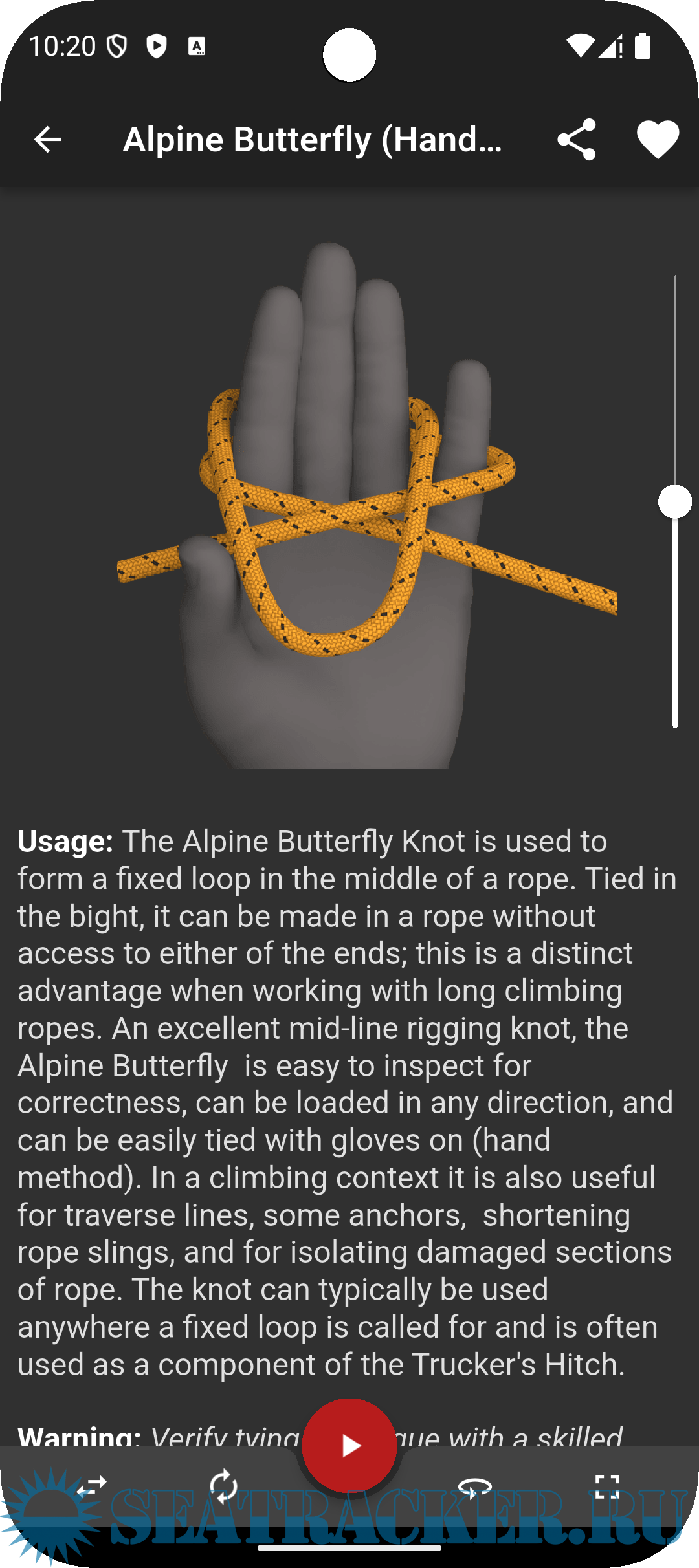• Watch knots tie themselves and pause or adjust the speed of the animation at any time