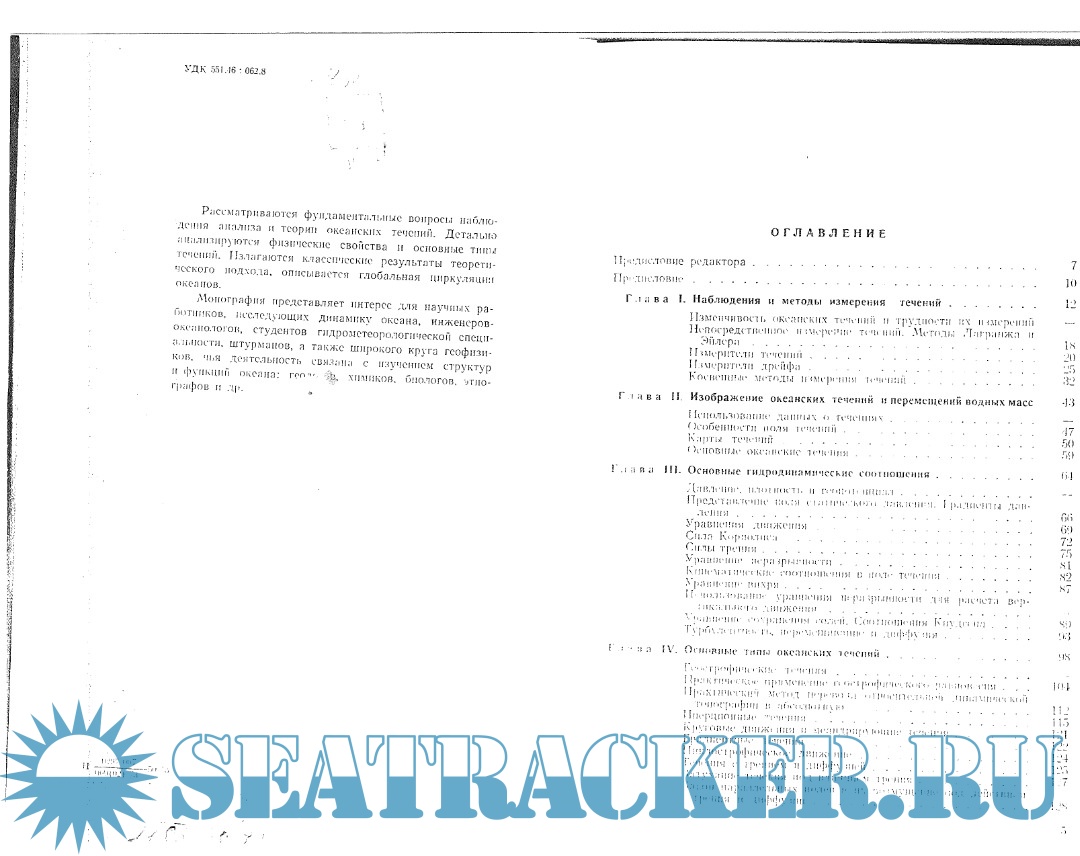 Монография представляет интерес для научных работников, исследующих динамику океана, инженеров-океанологов, студентов гидрометеорологической специальности, штурманов, а также широкого круга геофизиков, чья деятельность связана с изучением структур и функций океана: геологов, химиков, биологов, этнографов и др.