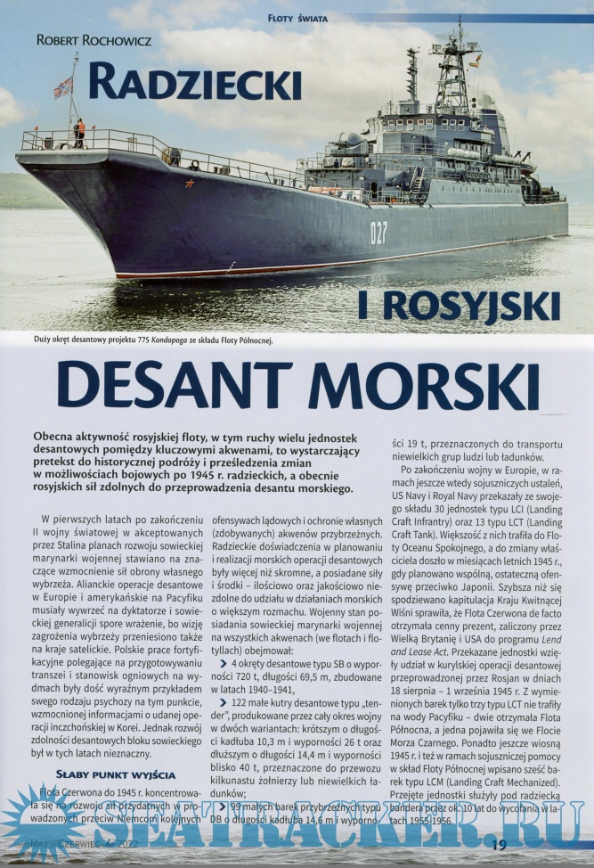 Description: Польский морской журнал. Издается с 1996 года, первоначально как ежеквартальный. С 1999 года издается раз в два месяца, а с 2007 года-как ежемесячный. Первоначально назывался Morza Statki i Okrety, в 2006 году переименован в Morze Statki i Okrety. С 2004 года полностью цветной (ранее только вставки). В 2008 году стали издаваться специальные выпуски, первоначально нерегулярные. С 2014 года выпускается как обычное издание и специальное издание, с непрерывной нумерацией.