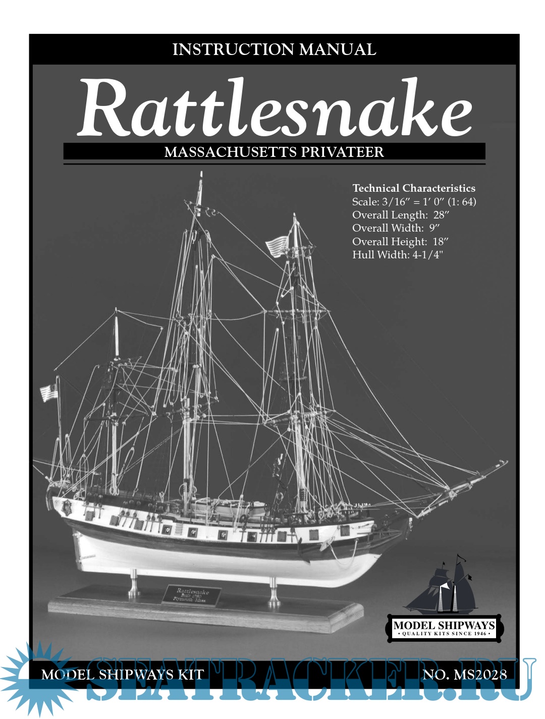 Description: The Revolutionary War privateer Rattlesnake was designed in 1779-80 by John Peck. It was built in Plymouth, Massachusetts, in the style of a miniature frigate and was armed with up to 20 guns and a complement of 85 men. While there is little history of this privateer, it is known that it was captured by the British in 1781. It was taken by the Royal Navy and sold soon after.