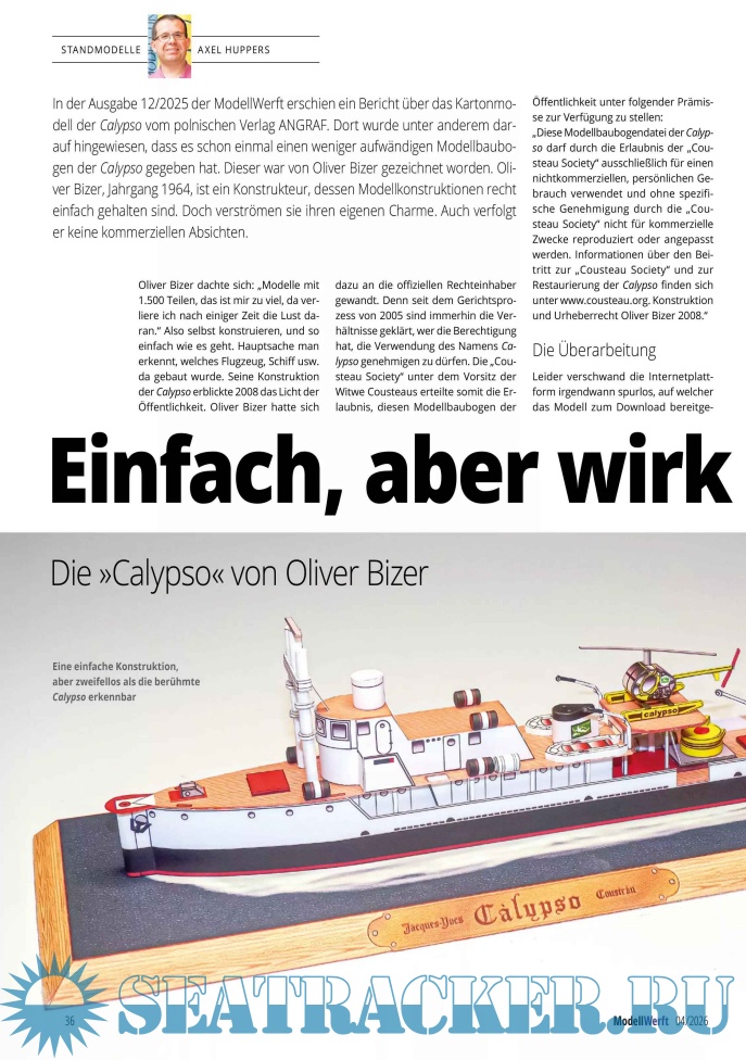 Description: Das führende Fachmagazin für Schiffsmodellbauer. Egal ob Stand- oder Fahrmodell, ob kleines Segelboot oder gigantisches Kreuzfahrtschiff. Die Modellwerft informiert über Neuheiten, hilft mit Bautipps und fasziniert mit besonderen Reportagen.