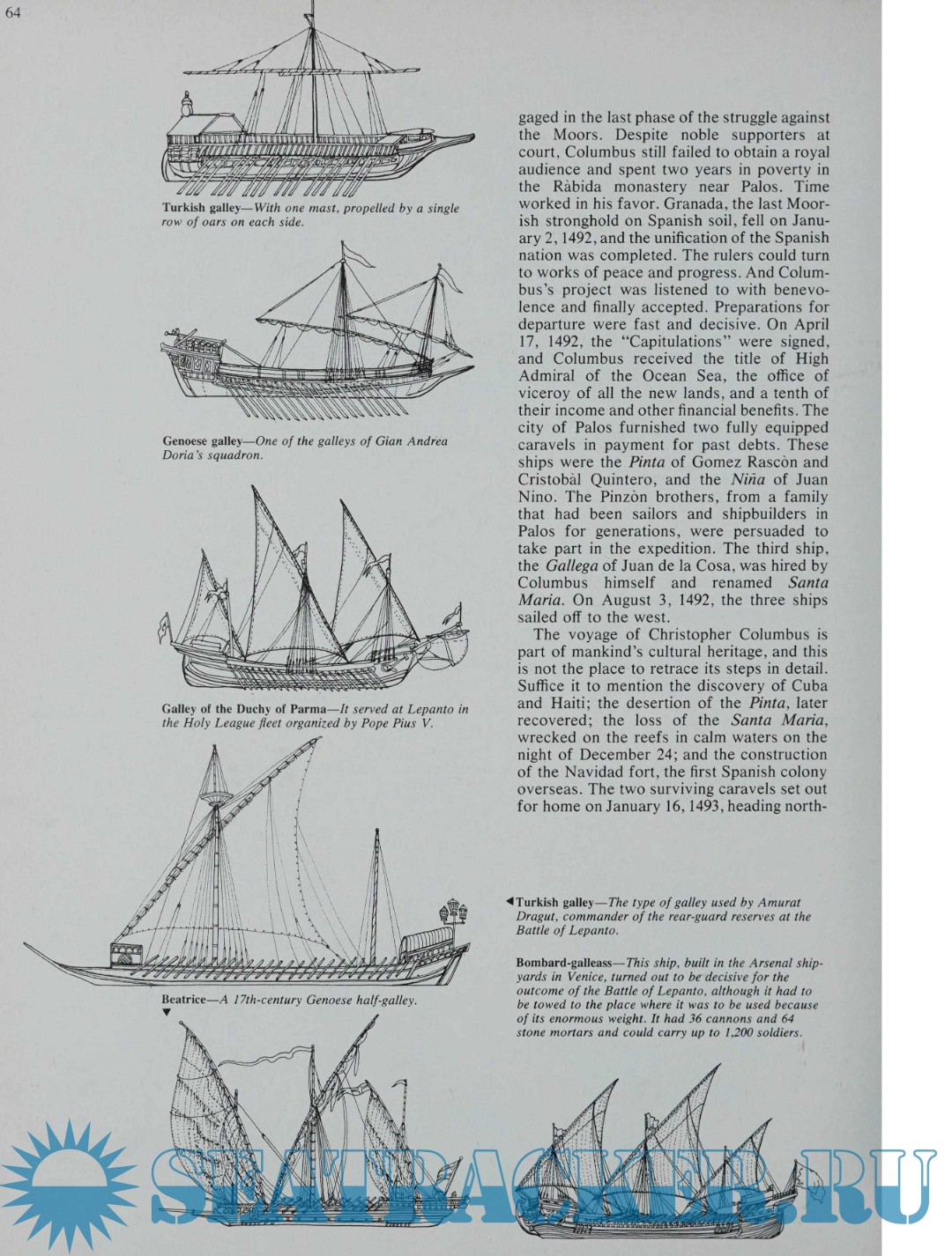 Santa Maria, the Ark Royal, the Bounty, the Cutty Sark, the Constitution, the Savannah, the Britannic, the Santo Stefano, the Titanic and the aircraft carrier Enterprise. The countries, epochs, civilizations, the gold and spice trade, the zealous spread of religion and scientific research and discovery are dramatically documented.