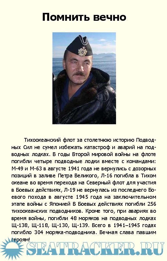 Описание: Долгое время о погибших подводных лодках и подводниках либо упоминалось вскользь, либо не говорилось вообще. До сих пор не известны широкой общественности подвиги этих героев мирного времени. На страницах книги приводятся данные по авариям, которые привели к гибели подводных лодок и гибели подводников ТОФ. Указаны случаи как аварийного, так и боевого характера. Приведенные данные не претендуют на полноту и абсолютную достоверность, поскольку получены из анализа открытых и небольших архивных источников. Книга написана по материалам отечественной и иностранной литературы, проектной документации подводных лодок, очеркам по истории конструкторских бюро и подводных лодок, справочной и мемуарной литературе, журнальным статьям и др. Использована информация из Центрального военно-морского музея России, иностранных военных музеев и мемориалов. В «Трагедиях Тихоокеанского Подплава» также приведены фотографии погибших подводных лодок и фотографии мемориалов и памятников подводным лодкам, которые увековечивают боевые успехи, мужество и отвагу подводников в борьбе с противником и ставшие памятниками подводникам, погибшим при их испытаниях и эксплуатации.