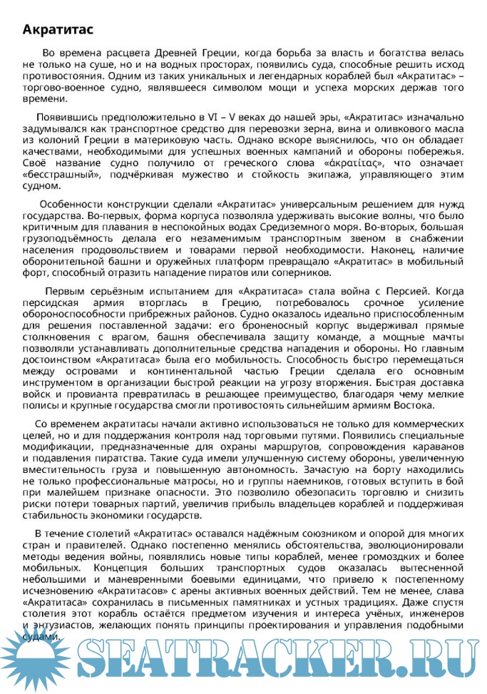 Описание: Эта книга посвящена величайшим судам древности, воплотившим собой лучшие достижения корабельной науки своего времени. Здесь собраны рассказы о судах, чьи имена давно вошли в легенды, вдохновляя поколения исследователей, поэтов и художников. Мы познакомимся с судами, покорявшими бескрайние воды Средиземного моря, пересекавшими Атлантику задолго до Колумба и бороздившими реки Азии и Африки. Каждый рассказ — это не просто описание внешнего вида или технических характеристик, но целая история.