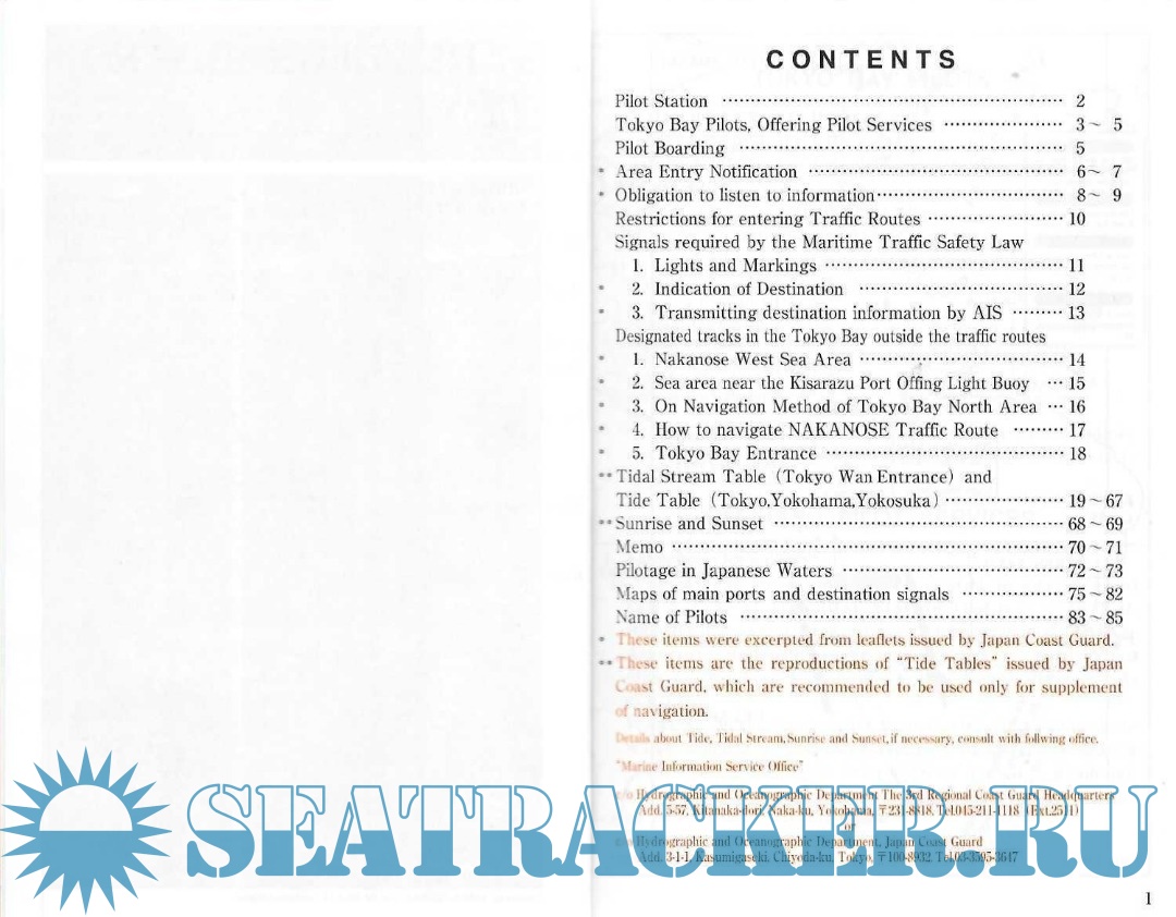 Description: Includes following information pamphlets provided by Tokyo Bay pilots: