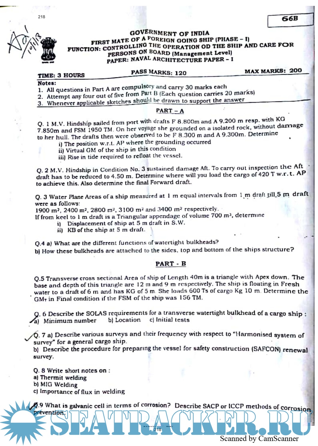 Question Paper Set for Naval Architecture I (July 2022) for Phase I (Chief Mate F.G.) Mercantile…