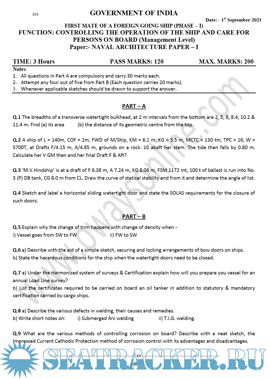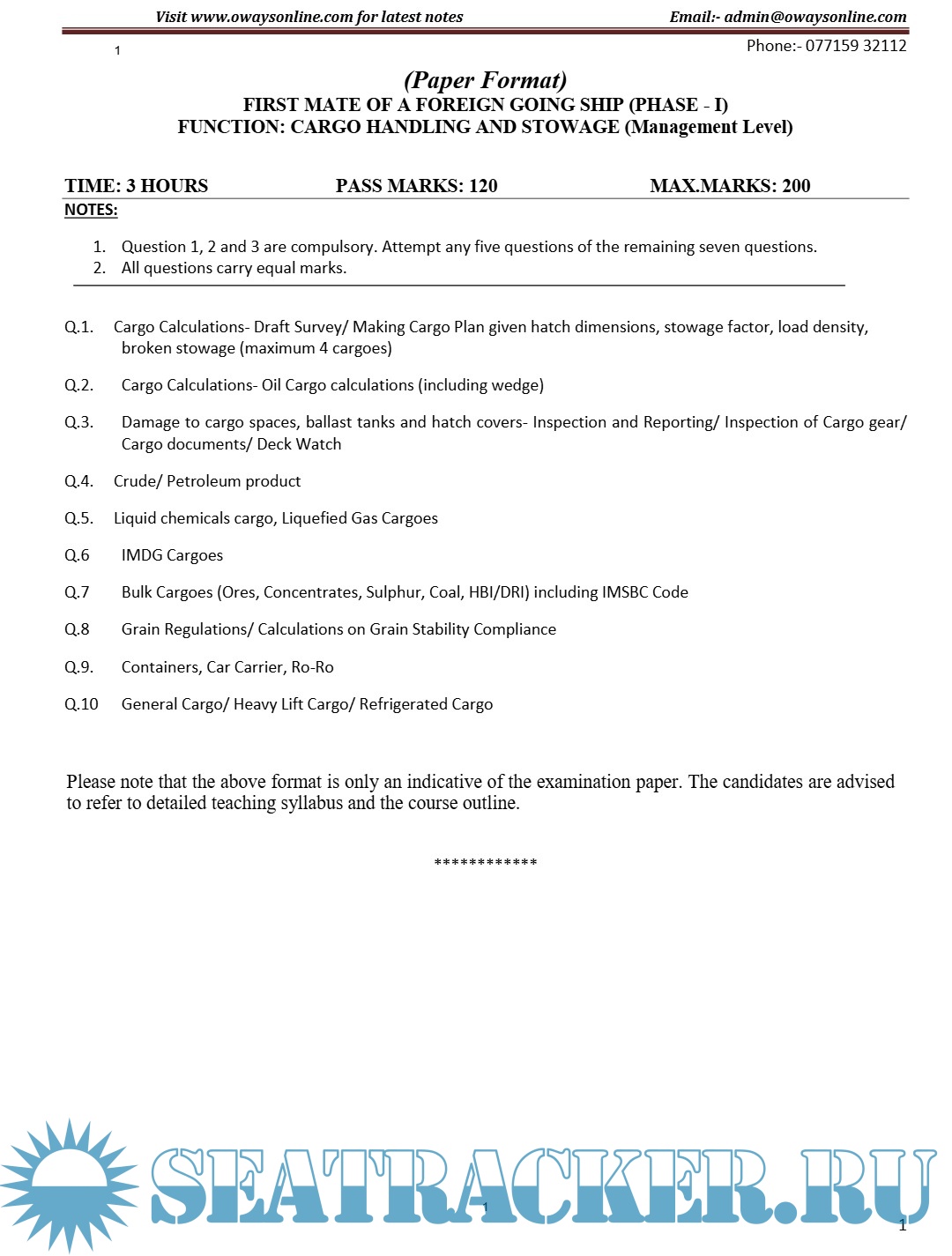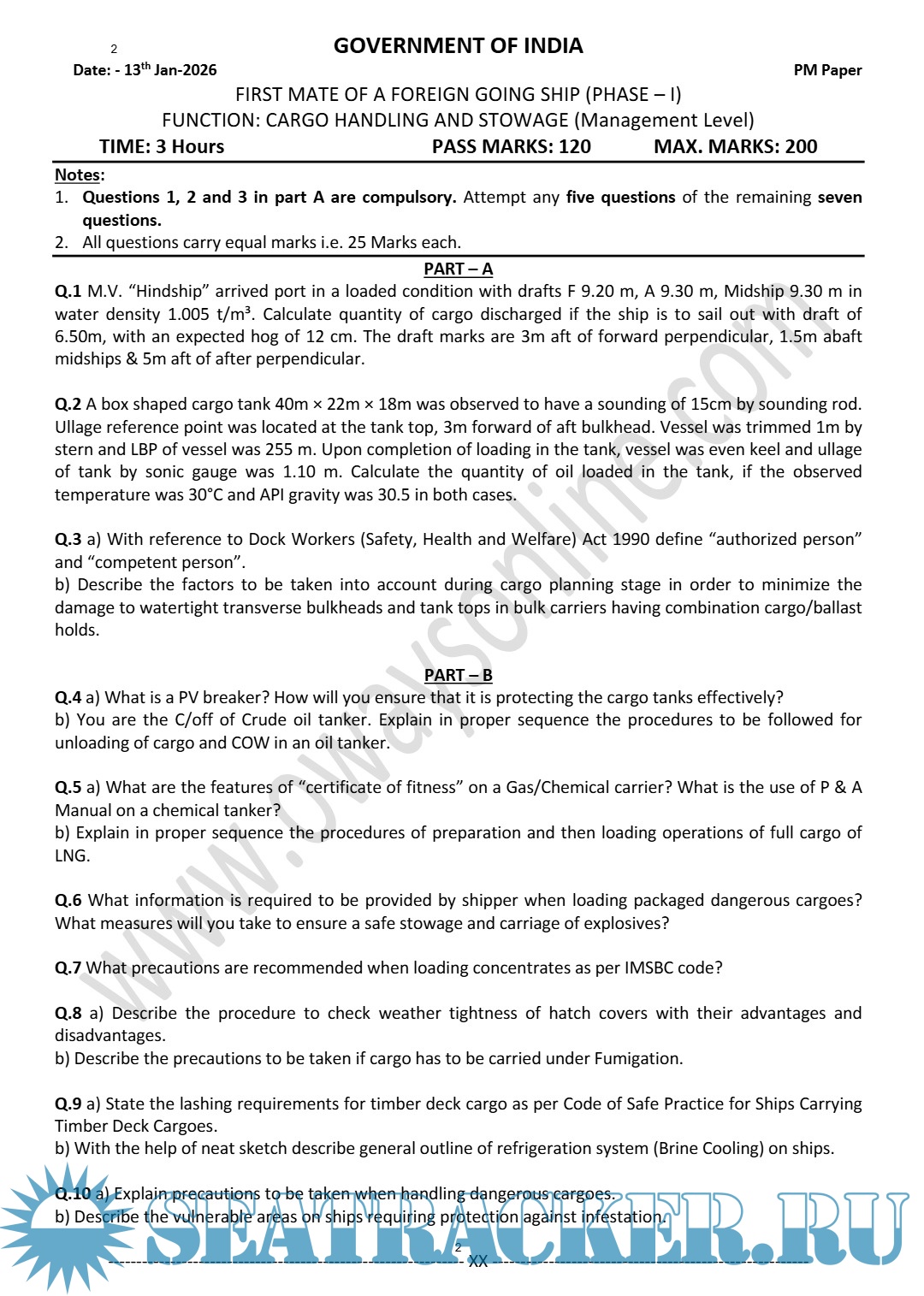 Question Paper Set (May 2023) Phase II (Chief Mate F.G.) Mercantile Marine Department (MMD), India…