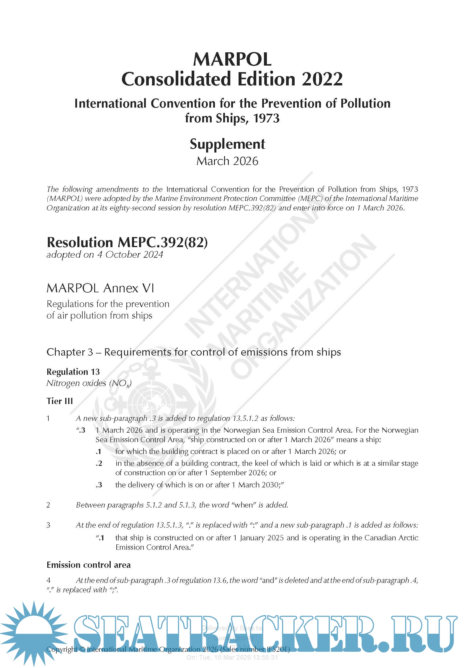 Supplement: MARPOL Consolidated Edition 2022 (IF520E) 10/03/2026