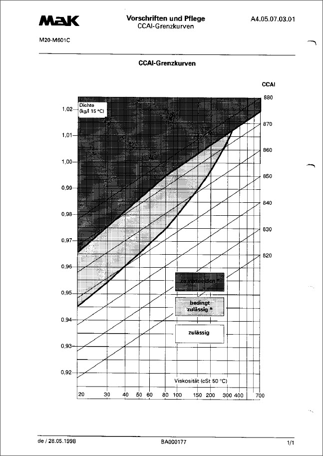Since the type of fuel used considerably influences the service life of the components, the Caterpillar / MaK after-sales service has to be consulted when it is required to change from destillate fuel operation to heavy fuel oil operation, in order to ensure an expert retrofit of the engine plant and to exchange the necessary documentation. When changing over from heavy fuel oil operation to destillate operation, the Caterpillar / MaK after-sales service should also be consulted for a longer period of time so that a documentation with extended maintenance intervals can be made available.