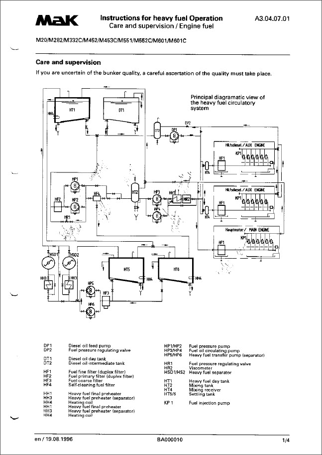 Так как используемое топливо сильно влияет на срок службы деталей, следует при запланированном переходе с режима работы с дистиллят-топливом на режим работы с тяжелым топливом обязательно известить МаК-сервис для покупателей, чтобы обеспечить профессиональное переоснащение двигательной установки и обменять необходимую документацию. При переходе с режима работы с тяжелым топливом на режим работы с дистиллят-топливом следует как можно раньше известить об этом МаК-сервис для покупателей, чтобы вовремя подготовить нужную документацию с более длительными сроками технического обслуживания.