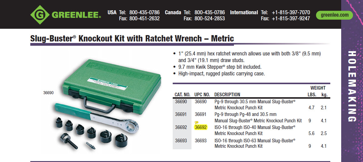 Knockout Kit with Ratchet Wrench-инструмент, позволяющий делать аккуратные отвертия в щитах(и не только) для cable glands,после не надо ничего подгонять напильником.К сожалению,RS номера не знаю,кому надо-тот найдёт