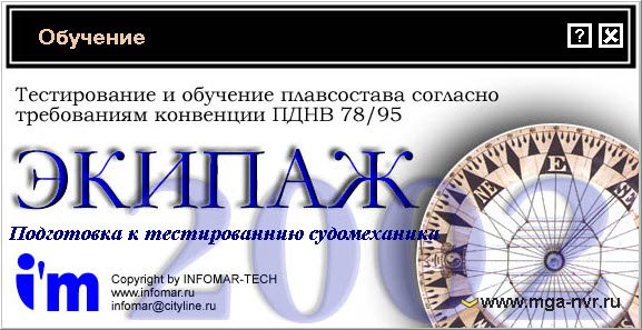 Описание: Экипаж 2002 - программа для обучения и проверки уровня профессиональной подготовки судомехаников и судоводителей согласно требованиям конвенции ПДНВ 78/95.